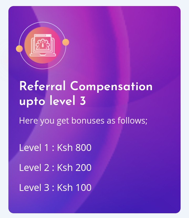 Level three: Whenever someone from your level two refers another person you will earn Kshs 100.